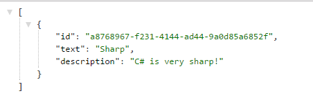 If you just want the source code for the app to play around with you can grab it from my GitHub. Now, once we have the source code we can run the site and navigate to /api/item to retrieve the default lists of items: