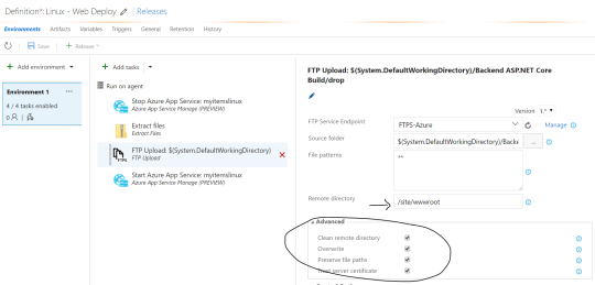 1, 2, and 4 are easy with minimal config, but #3 you must specify the remote directory of /site/wwwroot