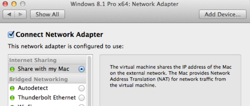 Can’t connect? Ensure your VM is on a Shared Connection to your Mac: