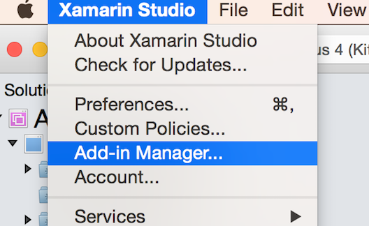 To get started all you need to do is go to the Xamarin Studio Add-in Manager.