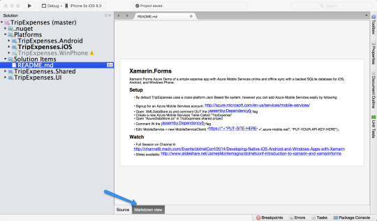 On the bottom you will see a Source/Markdown viewer toggle similar to the Xamarin.Android designer. Simply toggle to see your markdown rendered in realtime!
