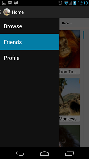 As you can see here, the user will slide or press the home button to slide out the navigation drawer, and then select which section they would like to go to next.