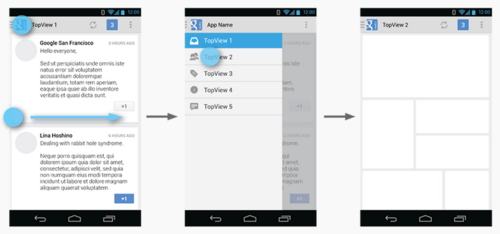When designing your app you have probably wondered about what type of navigation is the best to use. Dashboards, navigation lists, spinner drop downs, tabs, and fly out menus are all still prevalent and valid choices, however, Google has recently made a huge push to use their new standard Navigation Drawer control.