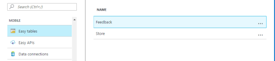 The first step a very simple Azure Mobile App and enabled Easy Tables and Easy APIs which leverage nodejs on the backend.