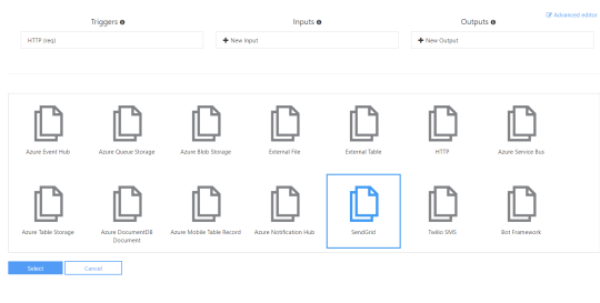 Under the “Integrate” section, you will see an input and output. I deleted the current output and selected a new SendGrid output.