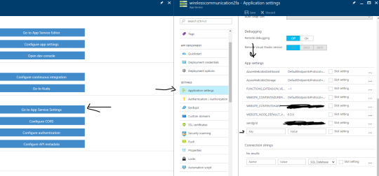 You now need to fill in a bit of information for the output. The most important part here is that the SendGrid API Key doesn’t actually get posted in here, you have to actually add it under your “Function app settings” -> Go to App Service Settings -> Application Settings -> then add a new app setting ->