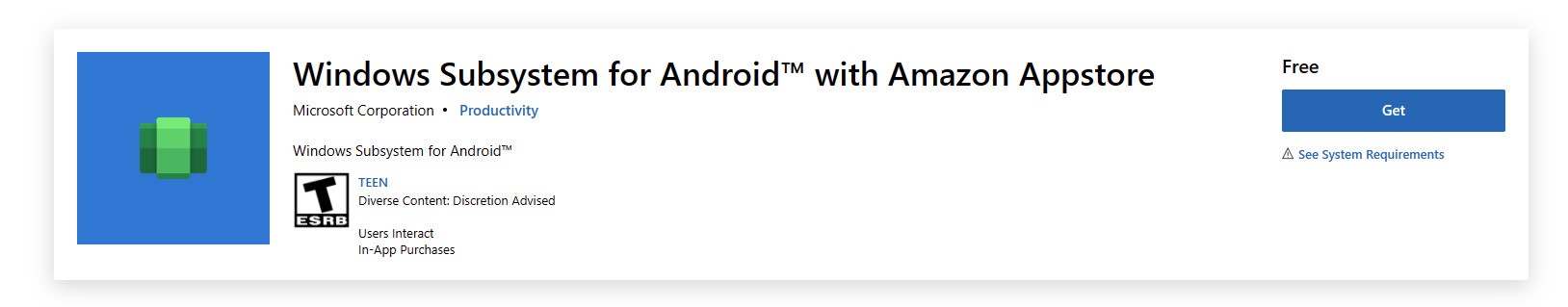 Now it is time to install the Windows Subsystem for Android, which also comes with the Amazon App Store. This is done directly from the Microsoft Store on Windows and will require a reboot and some final installation steps.