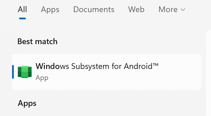 Once it is installed you will want to search and pin the Windows Subsystem for Android app.