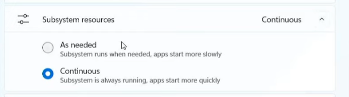 Inside of the WSA app you will find all sorts of great options, but a few things to turn on are "Continuous" mode, so the subsystem is always ready to go.