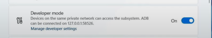 Alternative Method: Use the Windows Subsystem for Android Settings app to get the IP address.