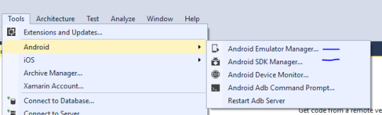 This is just good to know in general because you will need to update things every once in a while, but from Tools -> Android, you are able to get to the Android SDK and Emulators, let’s start with SDK Manager.