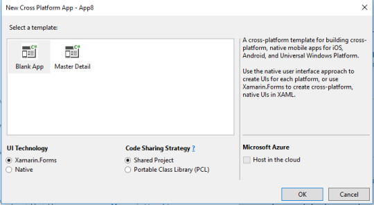 This will bring up a wizard to guide you through creating your first Blank app for Xamarin Native or Xamarin.Forms!