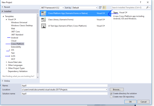 If you are creating a solo iOS/Android/tvOS app with high fidelity UIs for each platform then head to those sections, if you want a cross platform solution or a Xamarin.Forms solution and project then head to Cross-Platform to discover the new Cross Platform App Template.