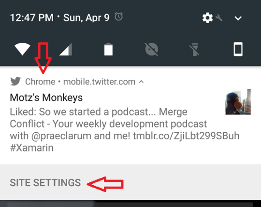 We clearly see that a website (mobile.twitter.com) sent us the push notification and that it actually came from Chrome. Odd, but even more interesting is there is a lack of functionality here in the push notification as there is no place to reply at all and there is this weird “Site Settings”. When I actually clicked on that it launched Chrome and crashed the Twitter Lite PWA and Chrome itself on Android. I had to go in and force quit Chrome to get the Twitter Lite app to restart, which was a fun adventure after using the app for only a few minutes.