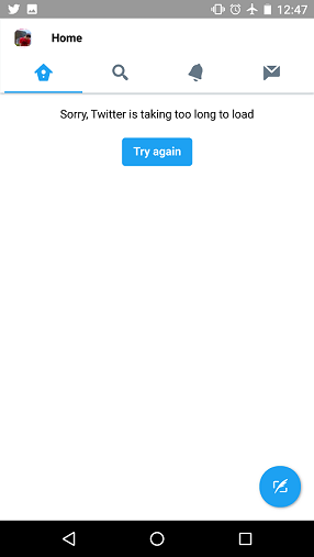 A huge advantage of native applications is that you truely have full access to the entire operating system and every API. This means you can craft lovely online and offline experiences, deep integrations with databases, realtime notifications, etc, you get it. So what happens when you go into airplane mode and launch Twitter Lite: