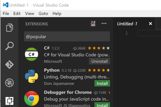 This brings up the Extensions manager and if you type in @popular then you will see the top extensions. (#1 being C#, which is awesome).
