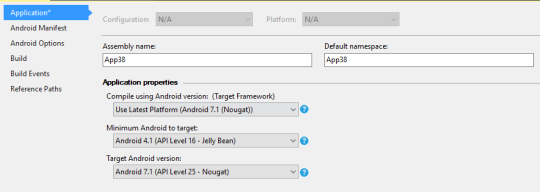 Try to create a new Android Blank App. Then right click and go to properties and Set the Compile and Target to Android 7.1 API 25: