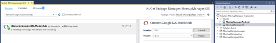 The nice thing about integrating ads in iOS is that we don’t have to worry about Google Play version issues at all. Search for “Xamarin.Google.iOS.MobileAds” and the Xamarin package should be the first one to come up. You can install the latest, which as of today is 7.11.0